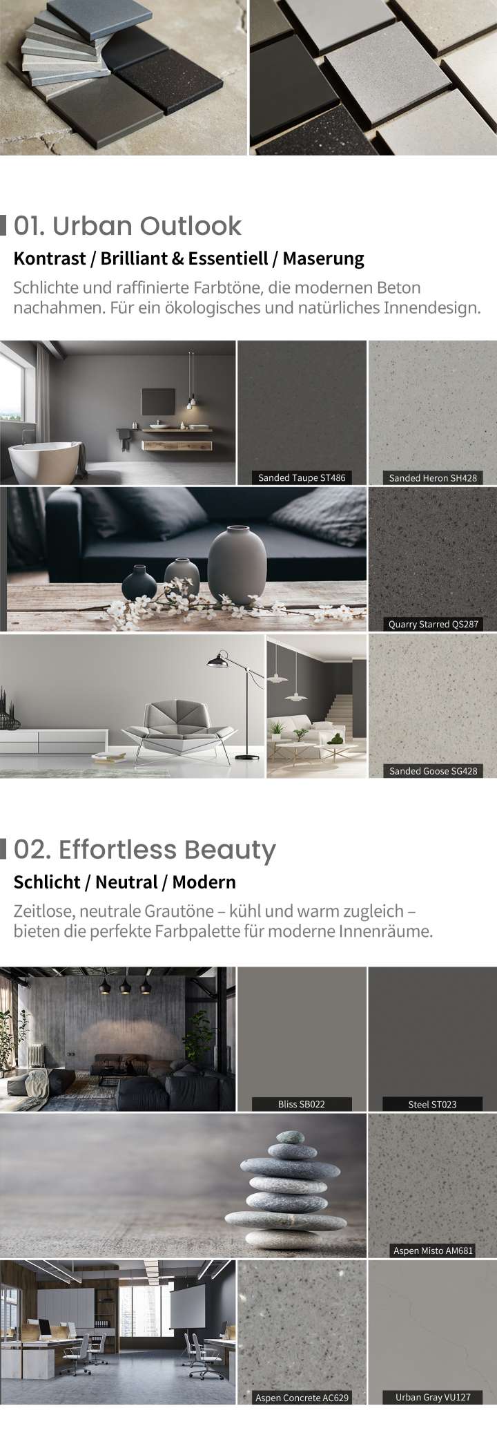 These chic and stylish colours will be your perfect choice to create an urban, simple, and sophisticated style for commercial and residential spaces.