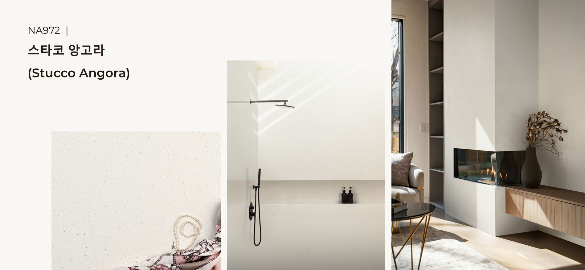 베이스에 미세한 솜털같은 패턴과 간간히 포함되어 있는 반투명칩으로 회벽에 자갈이 박혀있는 듯한 패턴을 구현했습니다.