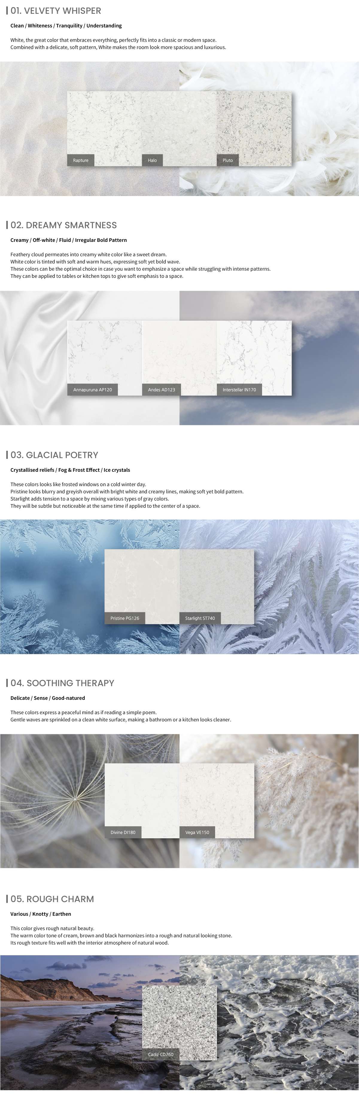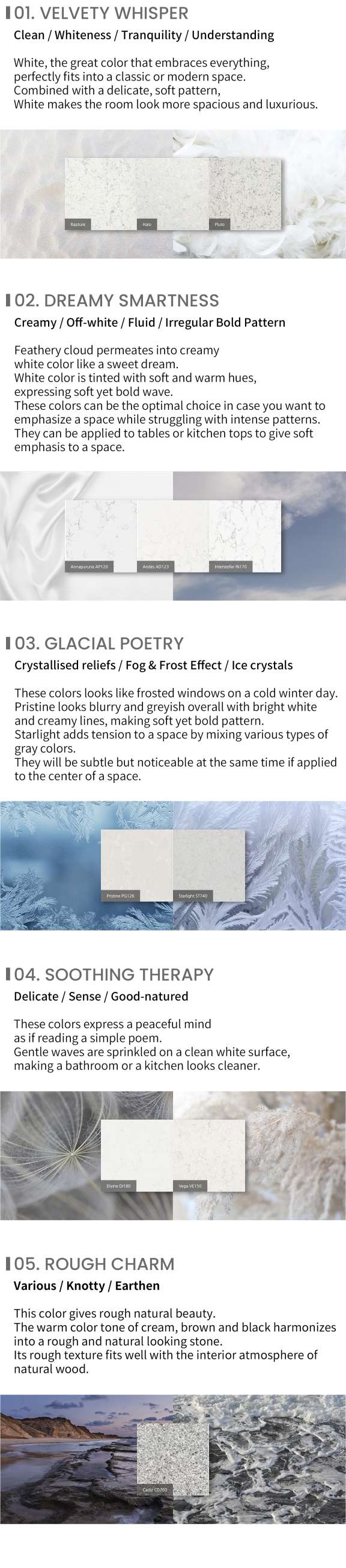Cirrus Collection of Radianz Quartz Surfaces is features a new type of vein pattern.