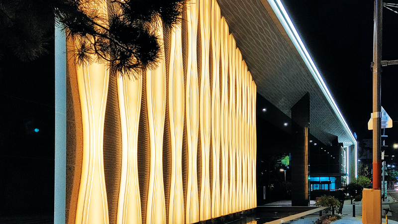 Staron, le matériau d'intérieur disponible en différents coloris et avec divers motifs, peut être transformé selon des formes incurvées et sans raccords et est facile à entretenir. De ce fait, il est idéal pour des designs créatifs. Il ne possède aucun des inconvénients du marbre naturel tels que la contamination, la difficulté de transformation et les coloris limités, et est réputé comme matériau d'intérieur écologique et non poreux. Les produits Staron se déclinent en deux collections, « Tempest », la surface solide transparente, et « Supreme », appréciée pour ses motifs naturels.
