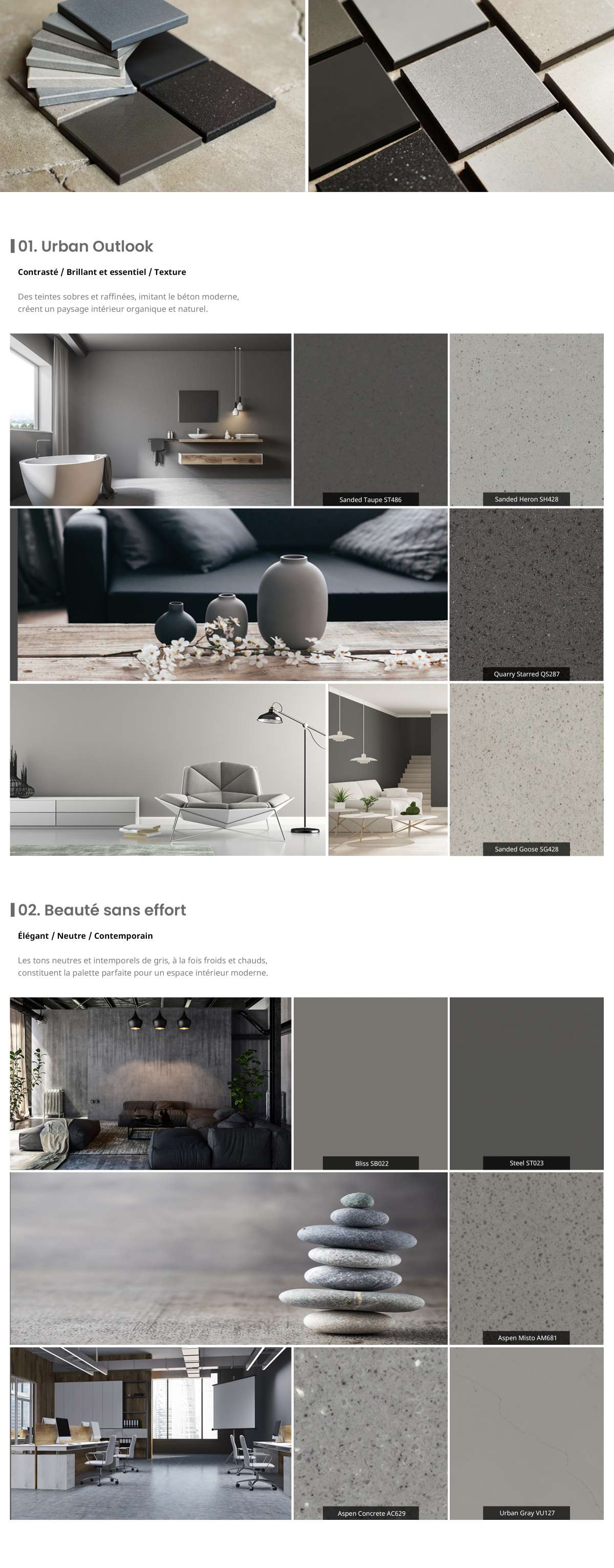 These chic and stylish colours will be your perfect choice to create an urban, simple, and sophisticated style for commercial and residential spaces.