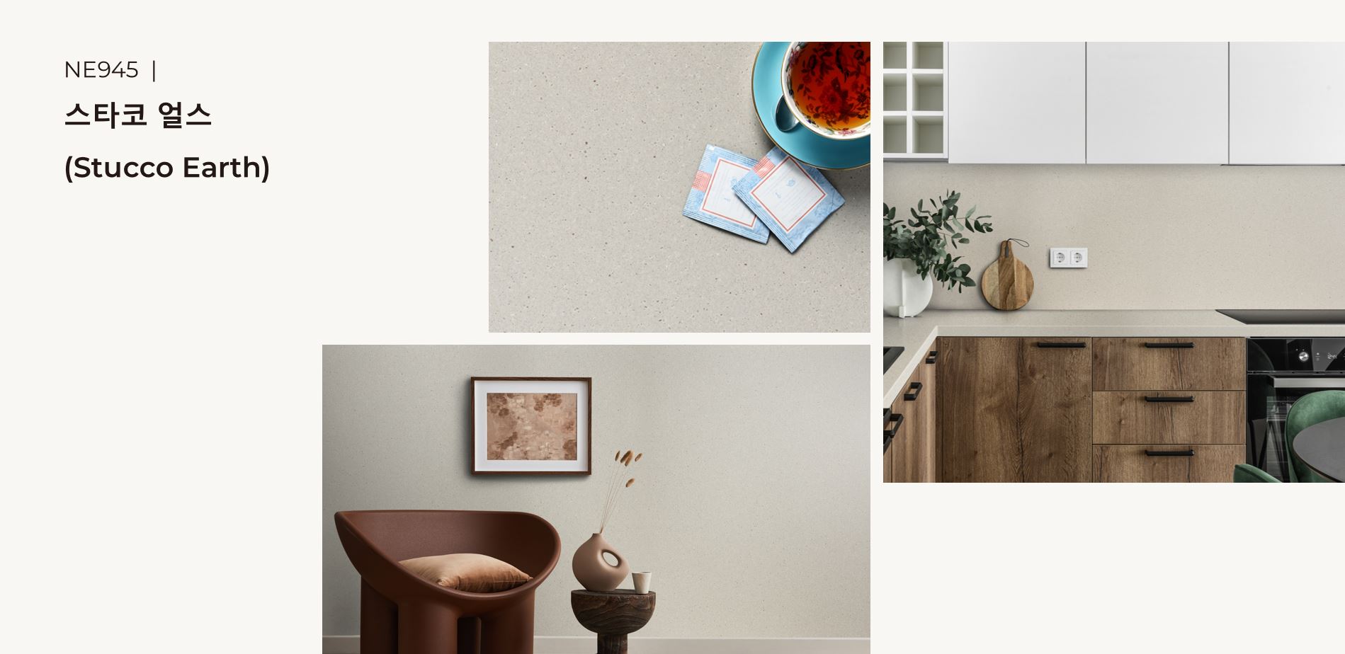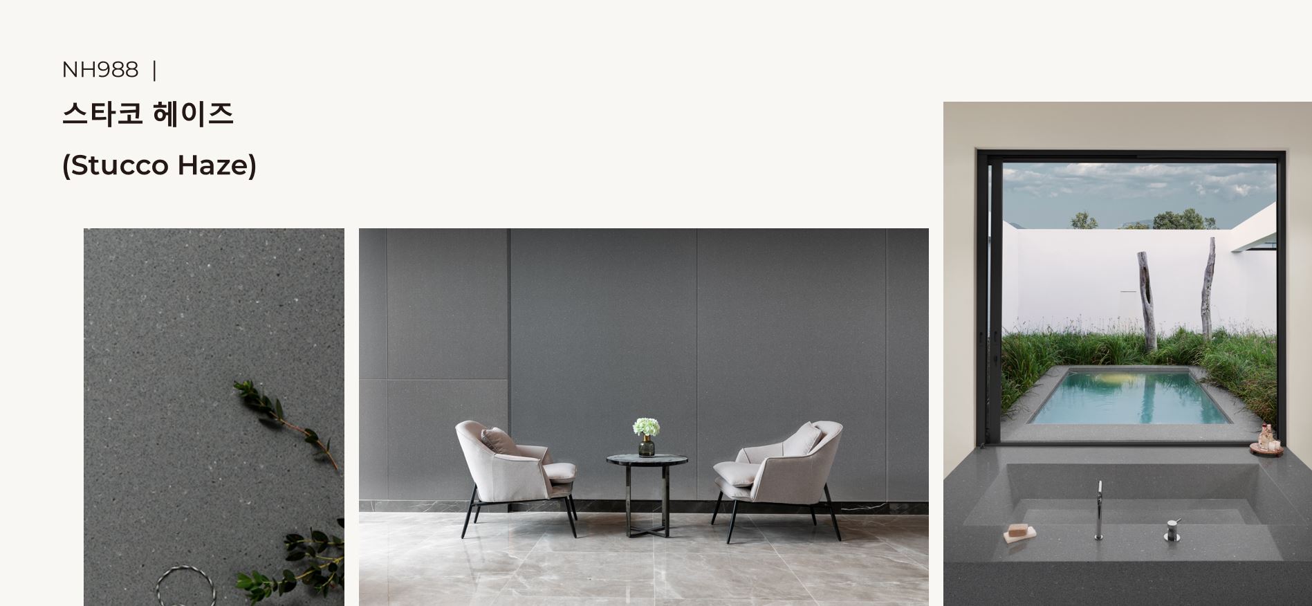 베이스에 미세한 솜털같은 패턴과 간간히 포함되어 있는 반투명칩으로 회벽에 자갈이 박혀있는 듯한 패턴을 구현했습니다.