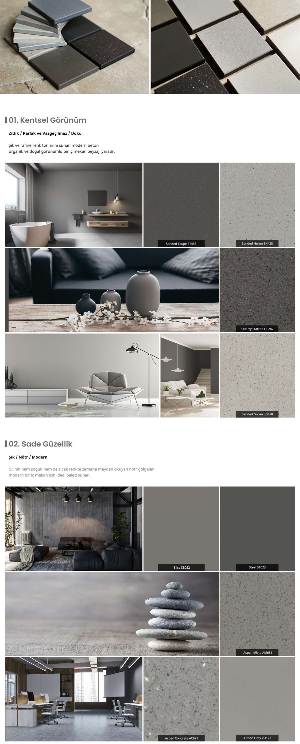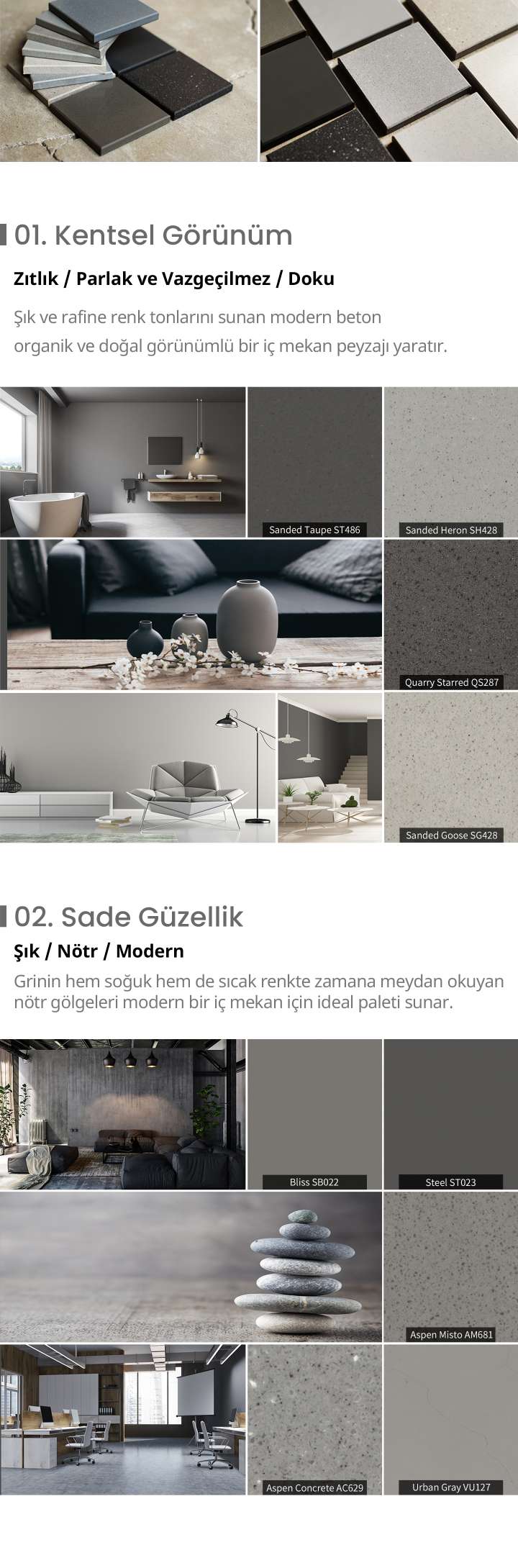These chic and stylish colours will be your perfect choice to create an urban, simple, and sophisticated style for commercial and residential spaces.